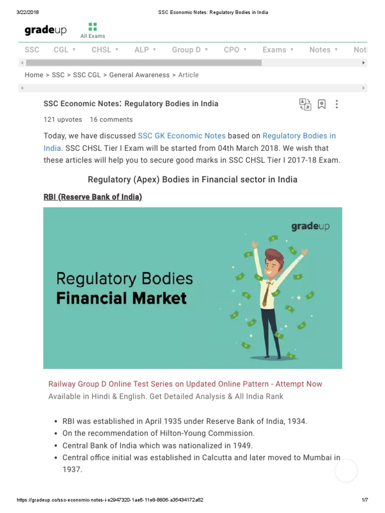 SSC Economic Notes Regulatory Bodies in India PDF Reserve Bank Of